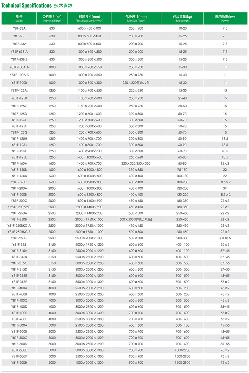 ⑤The size of the compression chamber and the form and size of the bale can be designed and customized according to the requirements of the customers.